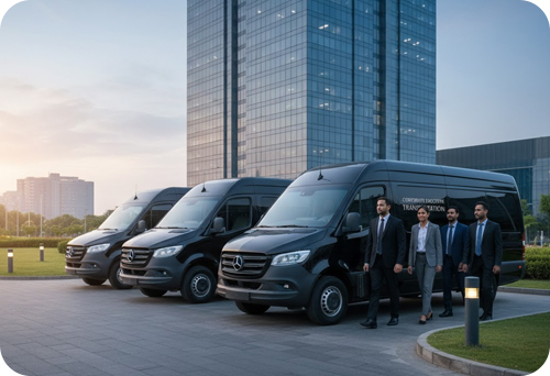 Our Toyota Innova Crysta (or similar), Premium Sedans, and SUVs are customized with soundproof cabins, reclining captain seats, and ambient lighting perfect for confidential conversations or quiet preparation.